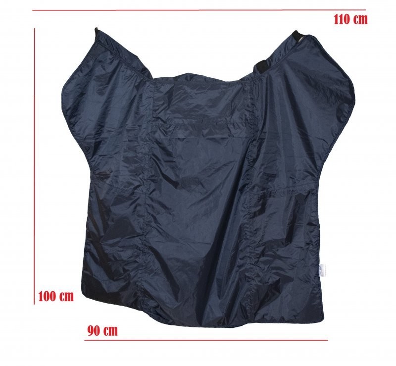 Skillnaden mellan en åkposa och den här överdraget är att den är lättare att ta på. Du kan antingen linda den runt dig innan du sätter dig i rullstolen eller medan du sitter. Överdraget har ett praktiskt resårband runt ryggen med ett magnetlås som håller det på plats.