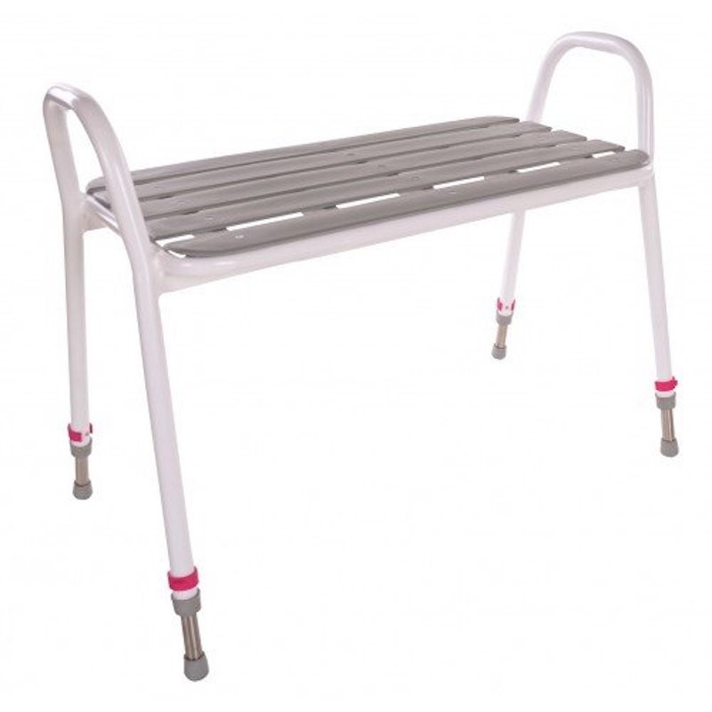 XXL badbänk med extra bred 70 cm sits. Badbänken är tillverkad i extra kraftig kvalitet och är godkänd för en användarvikt på upp till 200 kilo.
