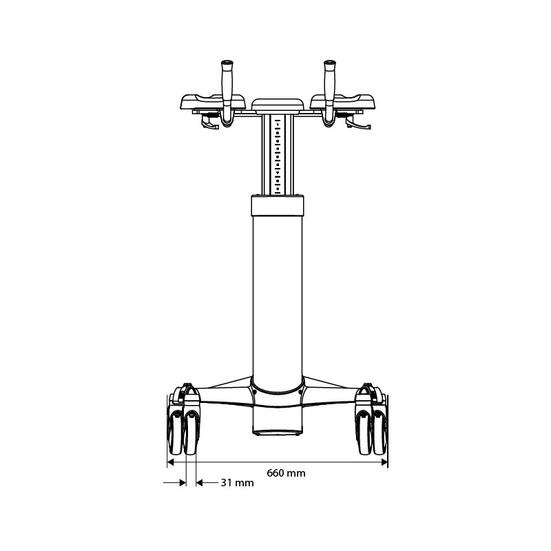 Topro Taurus H är utrustad med ergonomiska handtag som stöder en korrekt arbetsposition för användaren och minskar belastningen på axlar och armar. Den breda basen och de robusta hjulen säkerställer hög stabilitet – även när man böjer sig framåt, reser sig från en stol eller under asymmetrisk belastning.