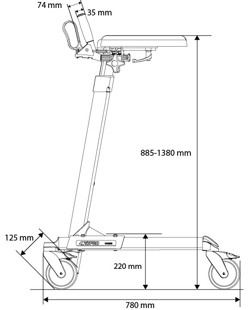 Topro Taurus E är konstruerad med fokus på professionell användning. Den robusta konstruktionen, de breda handtagen och den stabila basen ger hög säkerhet – även för användare med uttalade balansproblem. Gåbordet är lätt att manövrera inomhus och förblir stabil under belastning.